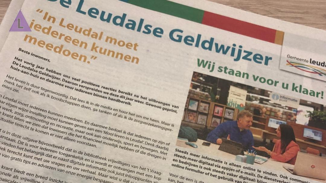 Leudal - 2 november 2025 - De gemeente Leudal heeft ‘De Leudalse Geldwijzer’ uitgebracht: een krantje dat informatie bundelt over lokale hulpmogelijkheden en regelingen aan de hand van verhalen van vrijwilligers en professionals. De krant wordt/is huis-aan-huis verspreid in de hele gemeente. De krant is hier ook online te lezen.