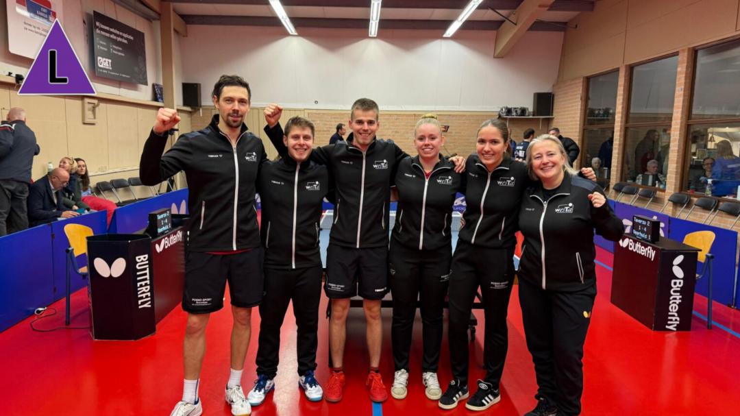 Wessem - 7 december 2025 - In de beslissingswedstrijden voor behoud van een plek in de eredivisie wonnen de ReynDesign/Westa dames en de VeerhuisWessem/Westa heren zaterdagmiddag in Nieuwegein van resp. Het Markiezaat 1 en van Taverzo 2. Dat betekent dat beide Wessemse teams komend voorjaar weer in de hoogste divisie van het Nederlandse tafeltennis uitkomen.