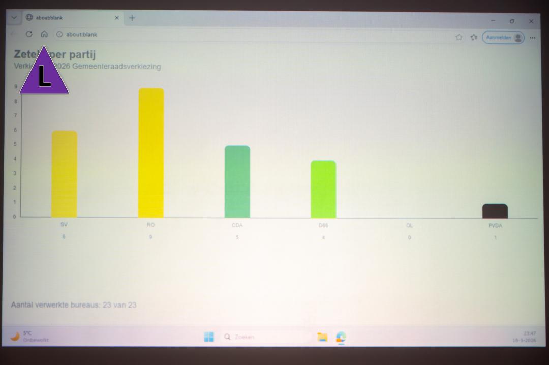 Heythuysen - 19 maart 2026 - De uitslag van de gemeenteraadsverkiezingen in de gemeente Leudal liet lang op zich wachten. Pas nadat de uitslag al op landelijke media te raadplegen was, maakte burgemeester Désirée Schmalschläger de uitslag bekend aan de mensen die zich hadden verzameld op de uitslagenavond in de Bombardon. De voorlopige uitslag van de gemeenteraadsverkiezingen in Leudal betekent een forse winst voor Ronduit Open dat van 6 naar 9 zetels gaat.
