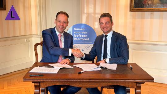 Roermond - 19 december 2025 - Gedeputeerde Michael Theuns en wethouder Dirk Franssen van Roermond ondertekenden gisteren het Leefbaarheidsakkoord. Hiermee spreekt de Provincie Limburg haar intentie uit om een bijdrage van € 1 miljoen te leveren vanuit de Leefbaarheidsaanpak. Vanuit deze aanpak draagt de Provincie bij aan het realiseren van onder andere een tijdelijk en permanent stadspark en maatschappelijk voorzieningen bij de herontwikkeling van het Centrumkwartier in hartje Roermond.